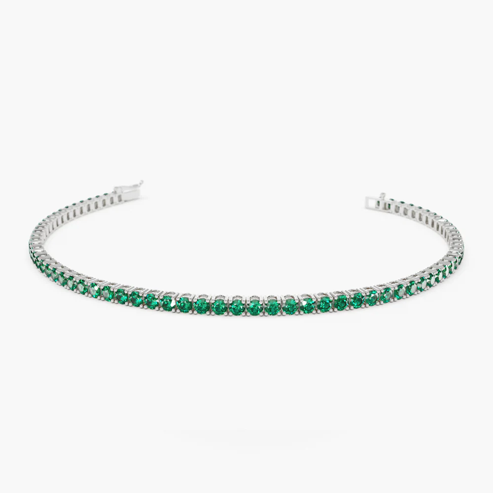 這是 18k 純金爪鑲祖母綠網球手鍊專為追求美學的女性打造,設計精美絕倫,魅力四射,卻又不失精緻,尤其適合搭配祖母綠。這款精美的珠寶採用18K純金打造,並有白金、玫瑰金和黃金三種顏色可選,百搭百搭,可與您的風格或珠寶系列完美搭配。這款祖母綠網球手鍊適合正式場合佩戴,或作為精緻裝扮的點睛之筆,為任何造型增添一抹奢華。