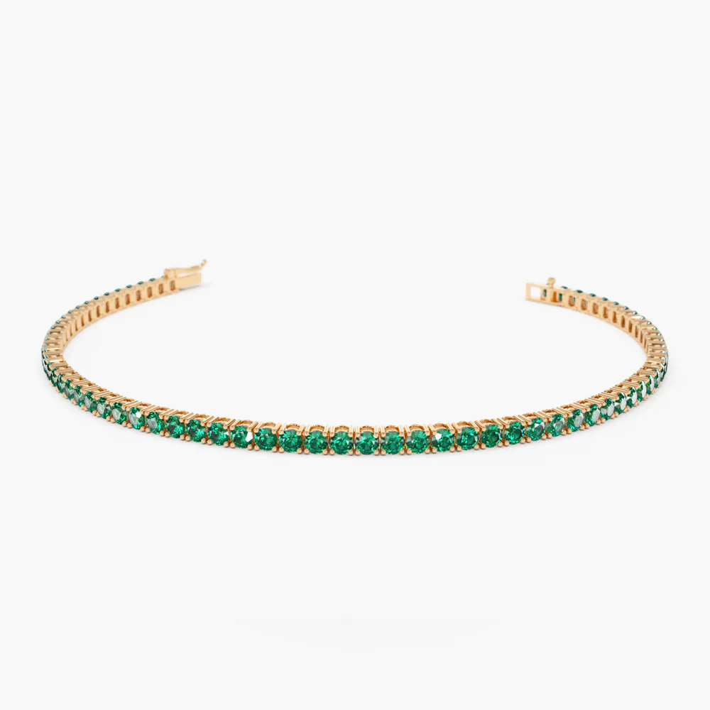 18k 純金爪鑲祖母綠網球手鍊是一款絕佳的配件,既可單獨佩戴,彰顯個性,又可與其他手鍊疊戴,打造更現代、更時尚的造型。它既可用於盛典、里程碑式慶典,也可用於日常造型,增添一抹優雅氣質。