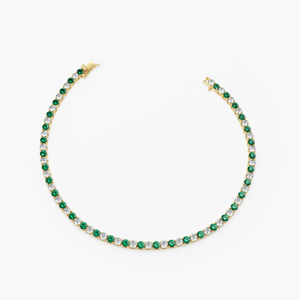 18k 純金爪鑲鑽石與祖母綠網球手鍊