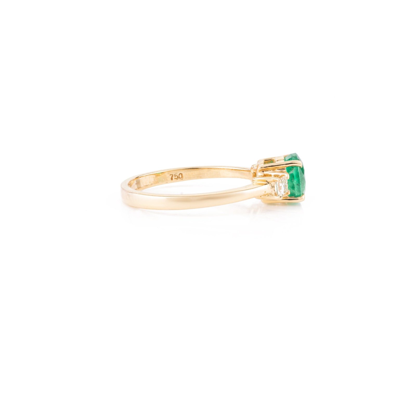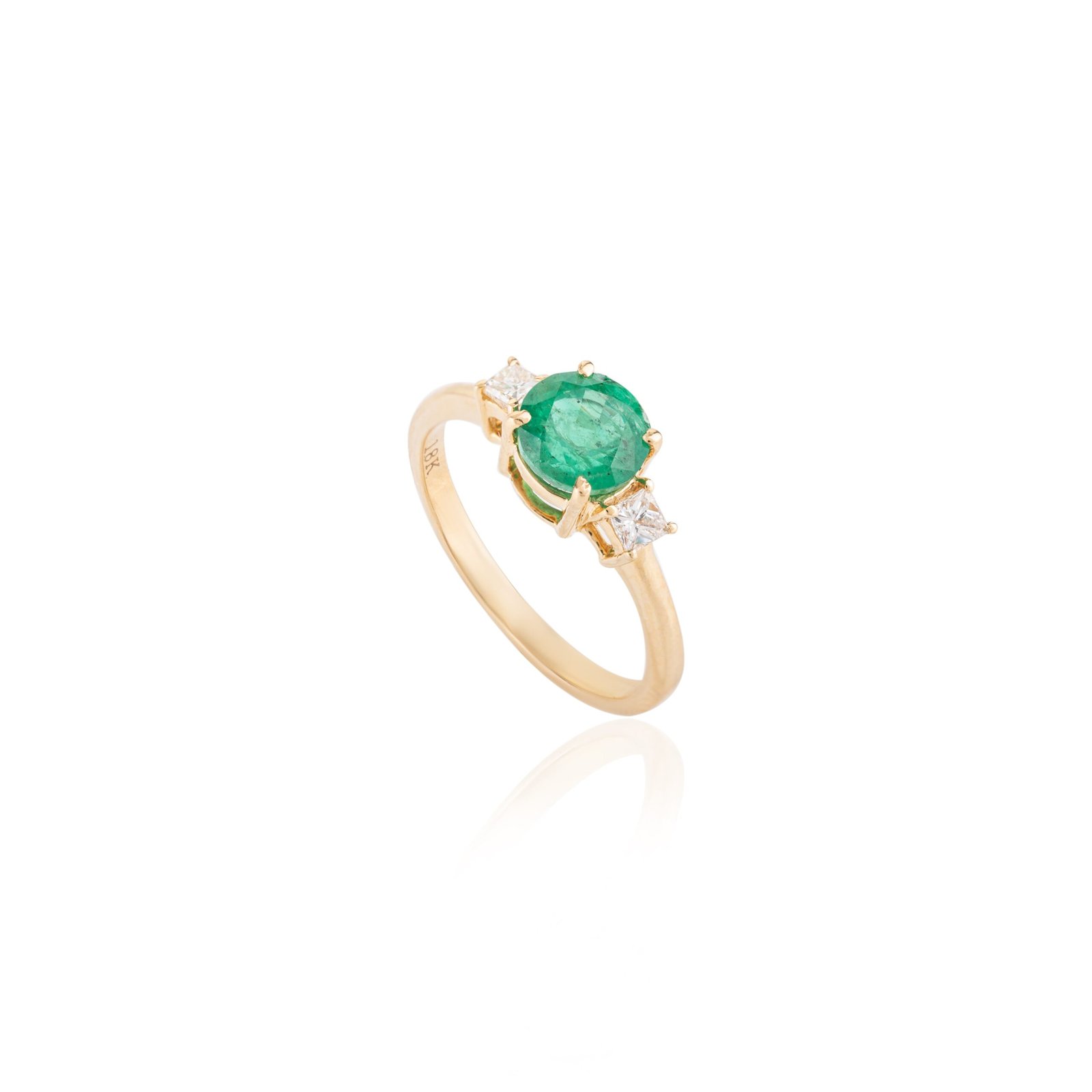 18K 純金祖母綠與鑽石三石訂婚戒指