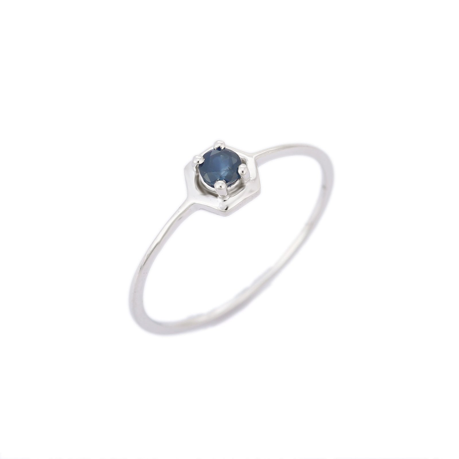 精緻的 18k 純金疊戴戒指,鑲嵌一顆鮮豔的藍色藍寶石,設計簡約,非常適合疊戴或單獨佩戴。