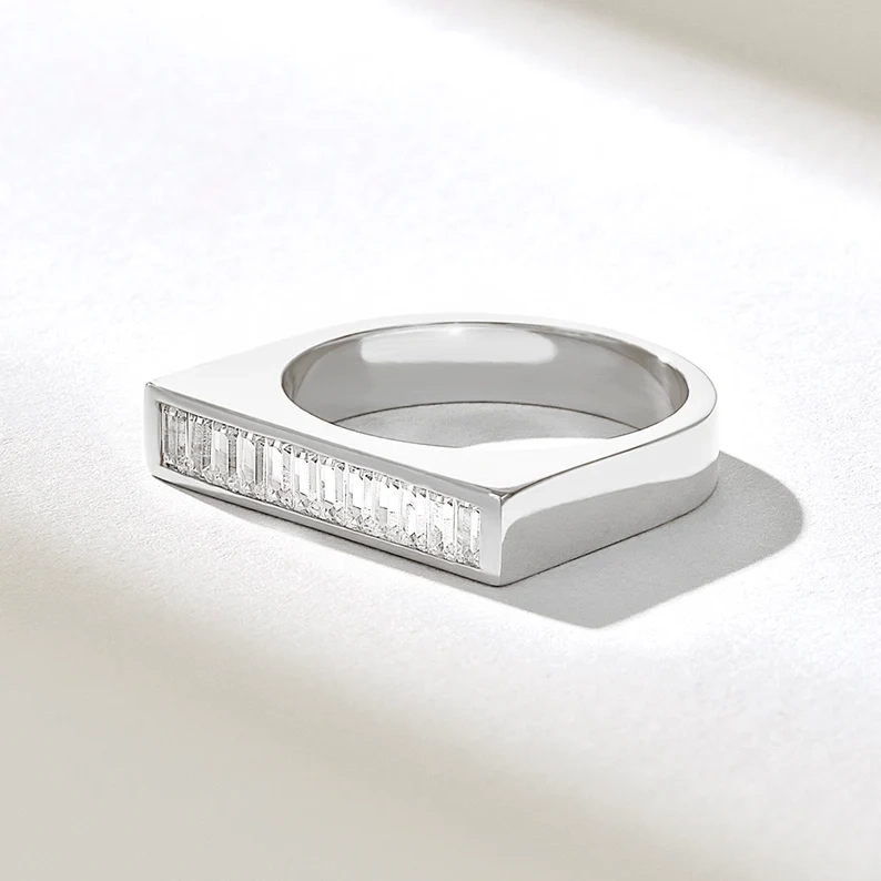 18k 長方形天然鑽石條形戒指,一款大膽而現代的印章風格設計,專為現代女性打造。由 18k純金,這款平頂戒指有 白金、玫瑰金和黃金,提供適合任何個人風格的別緻色調。