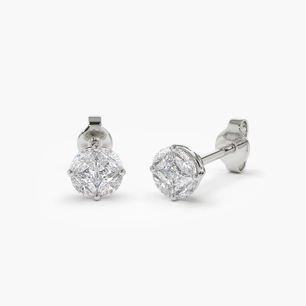 18k 5毫米幻彩鑲嵌天然鑽石耳環| 天然鑽石耳環