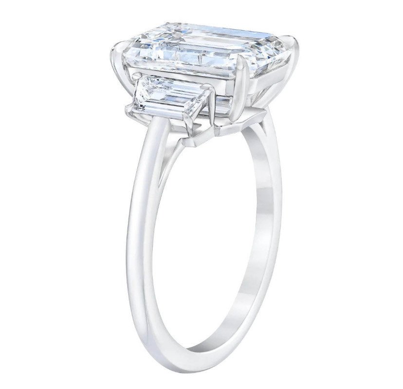 用璀璨的 3.03 克拉祖母綠切割鑽石莫桑石結婚戒指, 採用優質 18k 金精心打造。