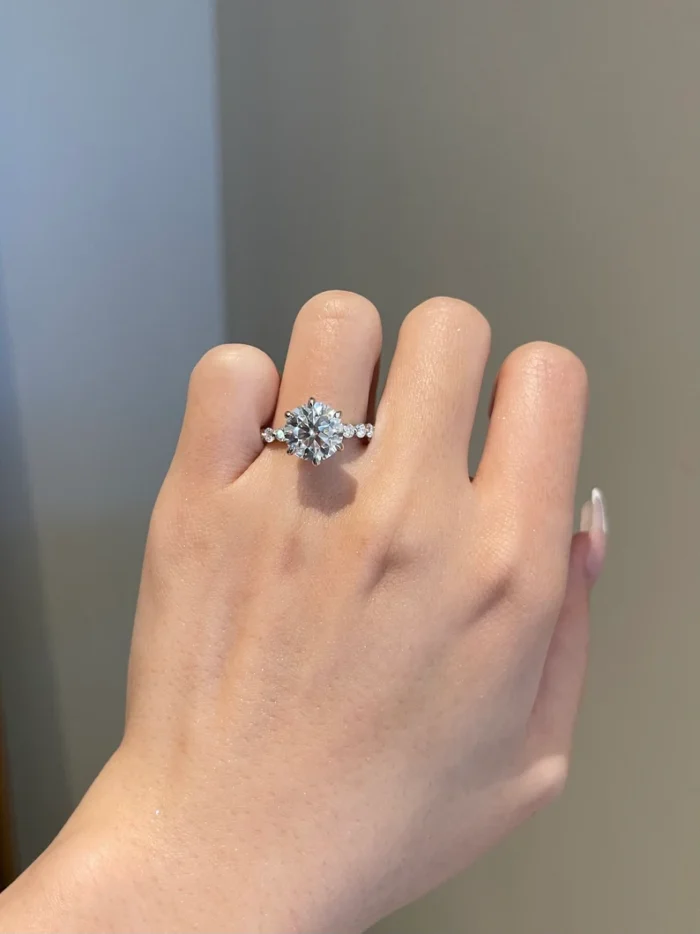 3.5克拉明亮圓形莫桑石金戒指六爪密鑲訂婚戒指