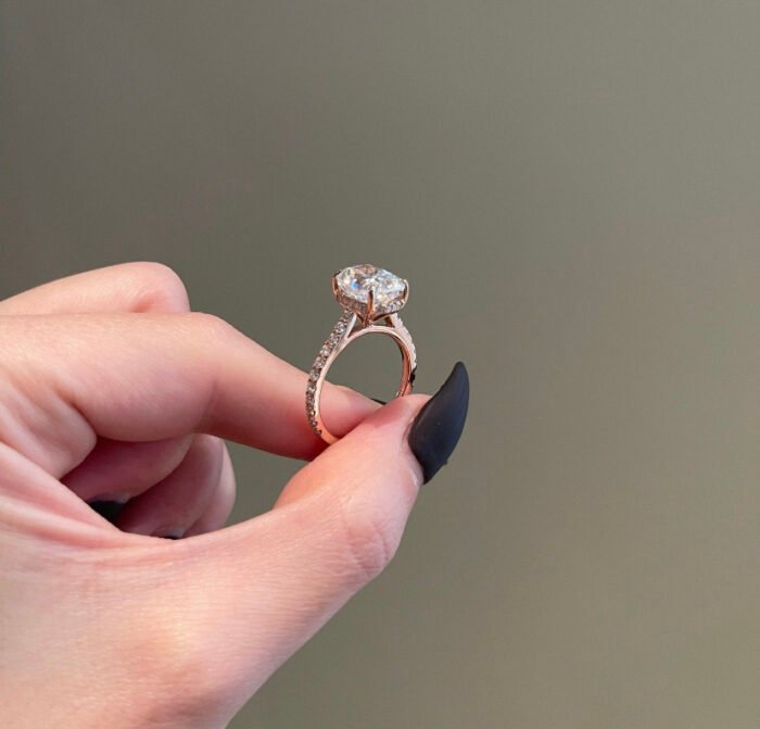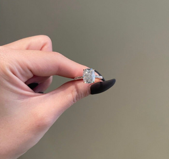 4克拉墊形切割碎莫桑石訂婚戒指,14克拉黃金打造