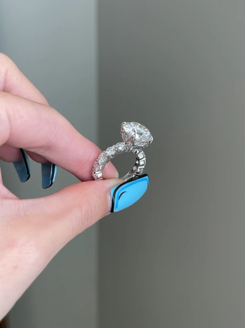 3克拉橢圓形切割莫桑石訂婚鑽石戒指
